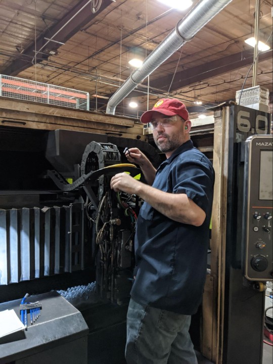 Called in for field service to a Mazak Optiplex 3015 Fiber Laser. The older Mazak lasers once used ball screws for all axes, but the newer fiber lasers often still had a ball screw for the Z-Axis. Over the years, several calls were received to fix blown out or jammed up Z-Axis screws in these machines.